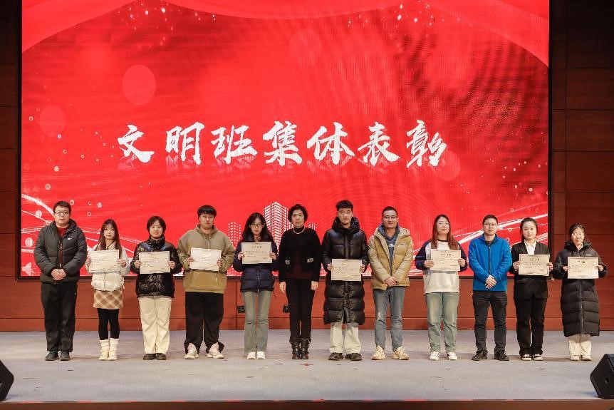 王玲宣读了《生物工程学院关于表彰2024-2025学年第一学期先进集体和优秀个人的决定》,择优评定出先进集体14个,优秀学生个人95人。随后,在热烈的掌声中,与会老师为获奖集体和个人颁发荣誉证书并合影留念。