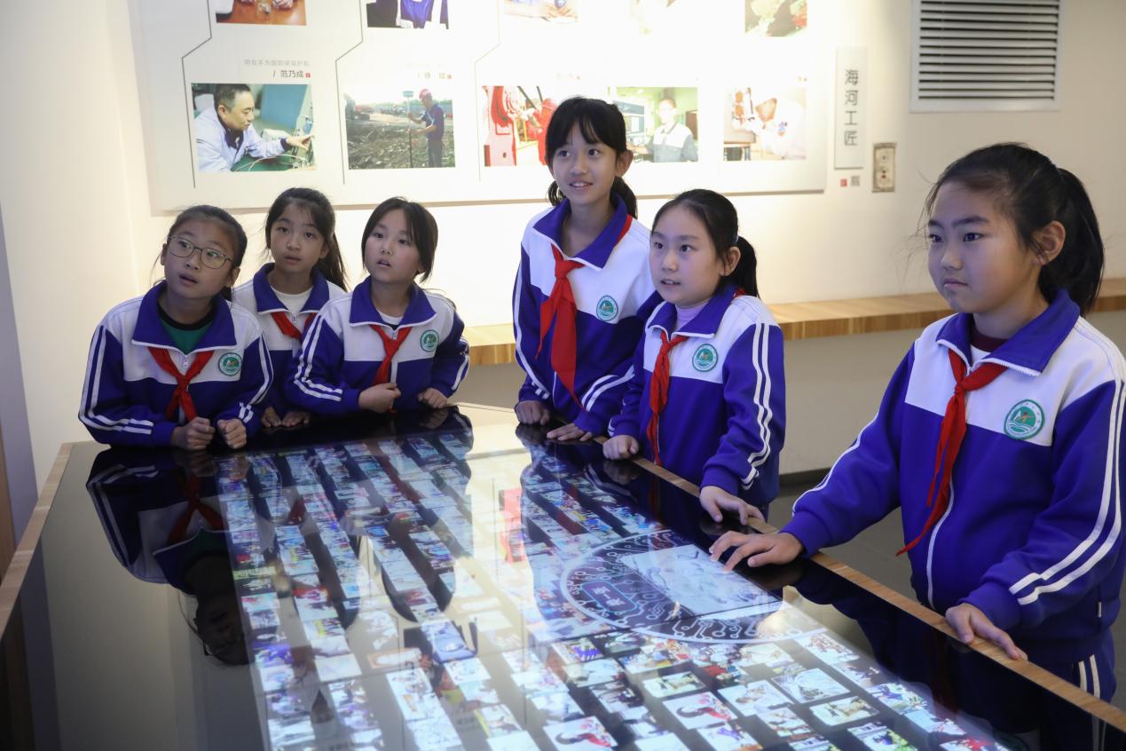 随后,进行大中小思政课一体化现场实践教学,由现代学院思政教师为大家讲解,通过图片、展板、模型、视频、模拟互动、VR课堂、实景体验等大家喜闻乐见的方式,全方位为师生们展示了包括新时代重大成就、党史、道德与法律、工匠精神、中国各地风土人情等内容,作为课堂教学的有效补充。