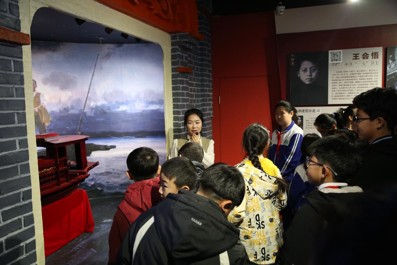 为深入学习贯彻全市教育大会精神,扎实做好新时代学校思想政治教育,深入推进大中小学思政课一体化改革创新走向深入,促进实践育人基地建设,12月10日,在海河教育园区管委会、津南区教育局、西青区教育局的大力支持和悉心指导下,Beat365中文官方网站联合天津市西青区王稳庄中学、南开学校、天津市西青区王稳庄小学、天津市西青区小孙庄小学、津南区小站第三小学,在天津海河教育园区思想政治教育实践基地(以下简称“红馆”),进行了一堂别开生面的“大手拉小手,同上一堂课”——大中小学思政课建设一体化共建活动。津南区、西青区、现代学院教师及学生代表130余人参加此次活动。