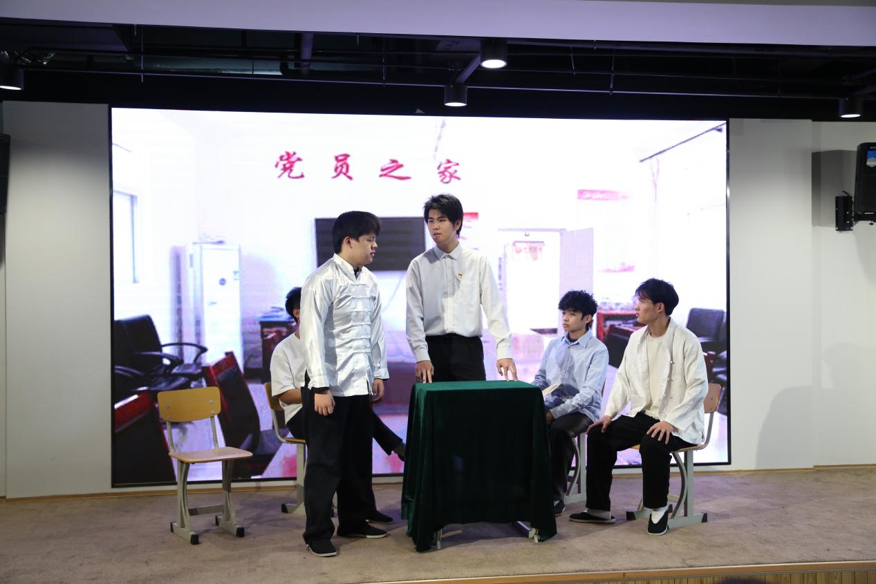 现代学院思政教师进行故事思政展示:你并不孤单。最后,现代学院学生带来情景剧表演《红手印》。学生们聚精会神、如沐春风,现场理论讲解与实践教学融合,师生互动与情景表演交互,气氛活跃、效果突出。