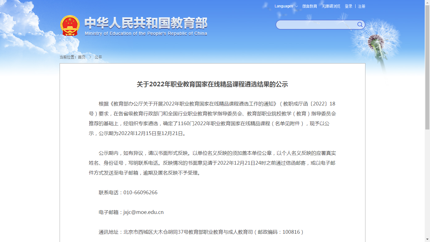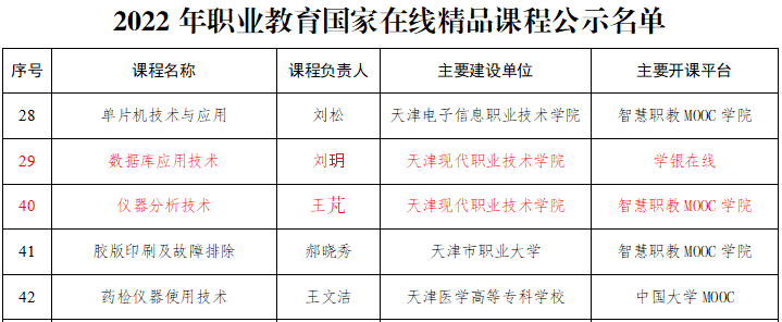 2022年12月15日,教育部发布《关于2022年职业教育国家在线精品课程遴选结果的公示》,公示了1160门2022年职业教育国家在线精品课程,这是职业教育首次独立认定国家在线精品课程,Beat365信息工程学院刘玥老师主持的《数据库应用技术》和生物工程学院王芃院长主持的《仪器分析技术》2门课程入选2022年职业教育国家在线精品课程公示名单。这是学院重视教育教学改革,紧抓课程建设质量方面取得的新的突破,也是学院在“双高”专业群建设获得的又一标志性成果。