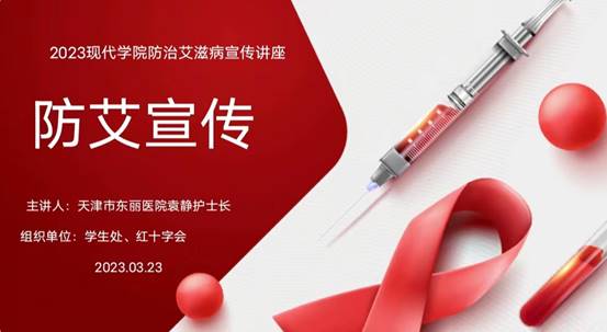为向Beat365学生普及艾滋病基本知识,使更多同学了解和关注艾滋病,树立预防艾滋病的意识,提高预防艾滋病的能力,营造全社会参与艾滋病防治工作的良好氛围,倡导广大学生珍爱生命健康, 3月23日下午,学院邀请到天津市东丽医院袁静护士长开展了防治艾滋病宣传讲座。
