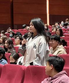 讲座期间,叶红梅与在座师生亲切交流,为大家指导朗诵的方法与技巧,激发同学们的朗诵热情,鼓励大家大声练习,感受朗诵的美感,享受朗诵的艺术。现场朗诵声、练习声交相呼应,在座师生热情高涨,气氛轻松愉快。最后,两位即将进行普通话考试的同学上台进行了朗读短文展示,并请叶红梅进行了现场指导。