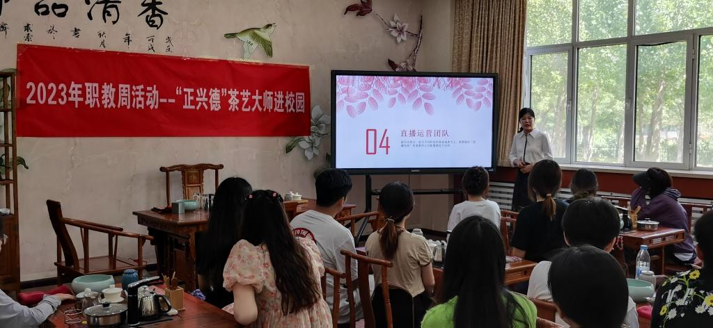 为深入学习贯彻习近平新时代中国特色社会主义思想和党的二十大精神,推动现代职业教育“一体两翼五重点”建设改革,管理工程学院于5月18日特邀北京正兴德茶庄直播间主播、国家一级茶艺师宫敬媛走进校园为学院旅游专业和市场营销专业学生讲解并传授了茶文化和数字营销的知识以及直播电商技能和茶艺技能。