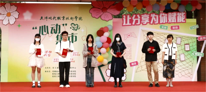 本次“心动”集市分为“把故事讲给你听”“让分享为你赋能”“把美好定格给你”“让幸福与你相随”四个板块,同学们在指定站点参与互动,领取体验券。