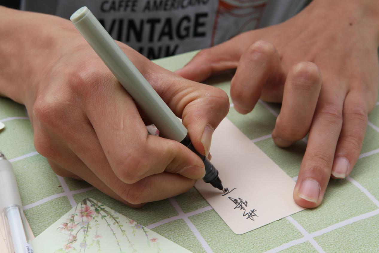 在“让幸福与你相随”站点,同学们从盲盒中抽取一张写有温暖和祝福的“幸福书签”,并在新的书签上手写一句曾经鼓励过自己的“金句良言”,重新放回盲盒中,将幸福和鼓励蔓延传递下去。