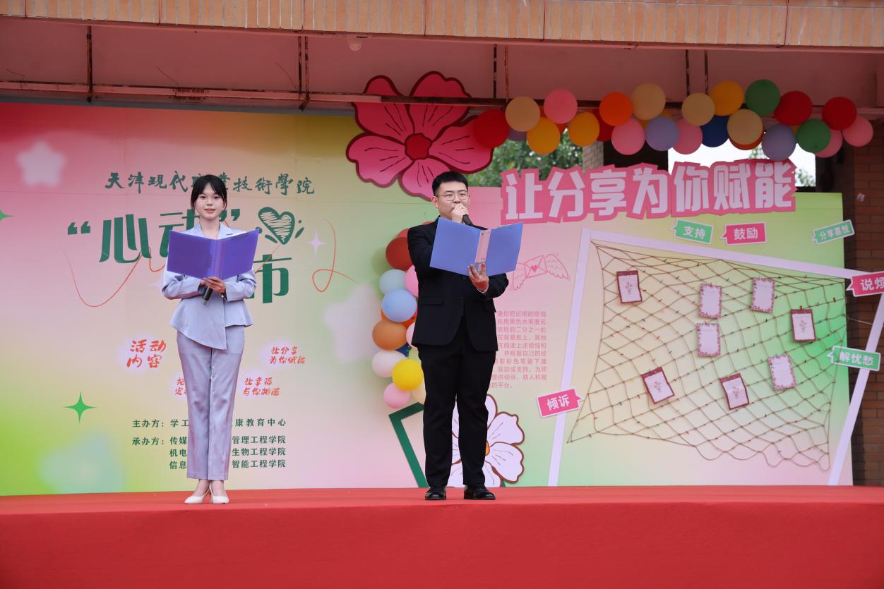 为深入学习贯彻习近平新时代中国特色社会主义思想和党的二十大精神,落实立德树人根本任务,加强大学生心理健康教育,丰富心理育人实践活动的形式,5月30日,学院举办了“心启航·心力量”心理健康月闭幕式暨“心动”集市特色活动,活动邀请了天津电子信息职业技术学院、天津交通职业技术学院、天津医学高等专科学校师生带来“一校一品”特色展示。学院党委副书记程非凡、学工部部长龙威林和各二级学院、有关部室的领导老师们参加了活动。
