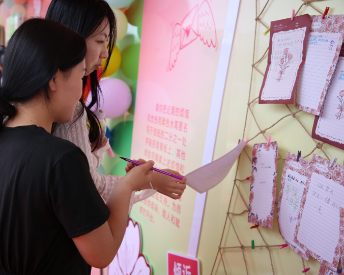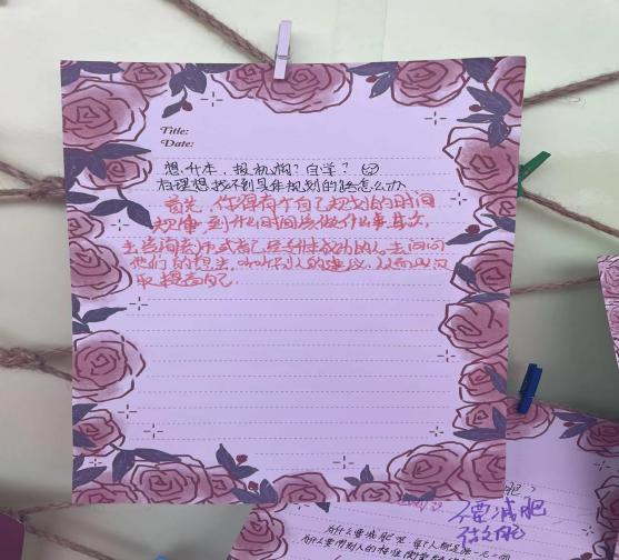 在“让分享为你赋能”站点,同学们将近期遇到的烦恼匿名写于信纸的二分之一处,其他师生将自己的经验、鼓励和支持写在信纸下方,在双向分享中为师生提供了一个倾诉、助人和赋能的平台。