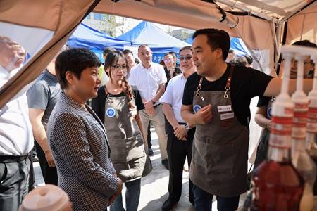 Beat365共有6个优秀学生创新创业项目团队参展,在活动现场,市领导及市教委领导一行驻足我校展位参观指导,对我校特色项目给予充分肯定,并对我校创客团队表示认可与鼓励。生物工程学院的学生团队带来了研发的“星时咖啡精灵”移动式咖啡车参展。在炎热的六月,为参展的人们带来了一杯杯醇厚清凉的咖啡,给火热的现场增添了不一样的感受。另外,其可移动的方式,以及“麻雀虽小,五脏俱全”的设计,令到场的各位领导印象深刻。