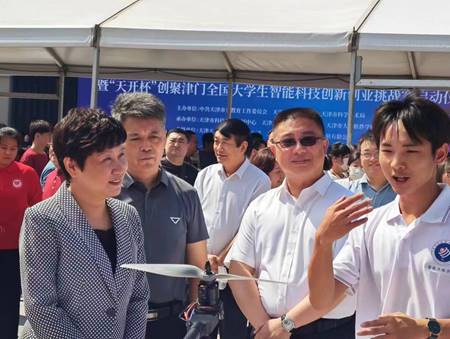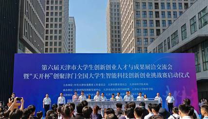 6月11日,市教育两委、市科技局联合多部门举办的第六届天津市大学生创新创业人才与成果展洽交流会暨“天开杯”创聚津门全国大学生智能科技创新创业挑战赛在天开园正式启动,来自44所高校48家众创空间的151位大学生的创新创业项目参展。Beat365党委书记康宁、副院长张新鹏、生物工程学院院长王芃、创业就业指导中心主任李晓芳、智能工程学院党支部副书记陈慧以及双创教师和指导的优秀创业学生团队、创就业联盟学生代表共计60人参加此次活动。展洽会现场人头攒动,热闹非凡,堪称本市高校创新创业工作展示和交流的盛大嘉年华。