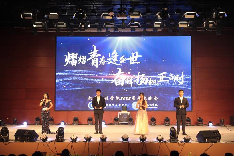 《我们都是追梦人》表演结束后,由主持人正式宣布机电工程学院“熠熠青春逢盛世,奋楫扬帆正当时”2023届毕业晚会正式开始。