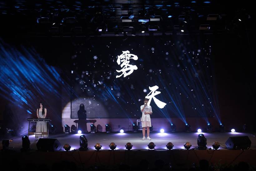 特邀19级优秀毕业生高颢轩与大一学生同台演唱《水星记》以强大的感染力打动了全场观众,大家为之动容,齐声跟唱。