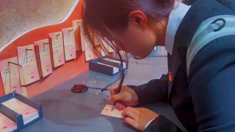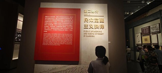 实践团第一站前往中共一大纪念馆,在纪念馆学习期间,实践团的成员在讲解员的引领下,走入了“中共一大”召开那段峥嵘岁月,馆内以“初心使命”为主线,共分为序厅、“前赴后继、救亡图存”“民众觉醒、主义抉择”“早期组织、星火初燃”“开天辟地、东方日出”和尾厅7个板块,综合采用多种展示手段,全面系统地展示了中国共产党的诞生历程。实践团成员还在留言墙上写下了“请党放心、强国有我”等展现现代学子家国情怀的铮铮誓言。参观过程中,实践团成员纷纷表示,重温建党岁月是现代学子的必修课。希望借此社会实践活动,了解更多有关建党之初的历史故事、历史背景,只有这样才能更好地传承红色基因,赓续红色血脉,守好红色江山。