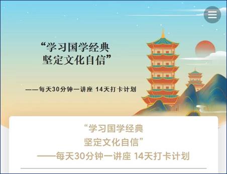 此次活动设置14天打卡内容干货满满,从《诗经》到《离骚》,从诗词歌赋到四大名著,从书法绘画到传统文化和现代人生,带领学生找到了叩开国学经典之门的密码。参与活动的学生们纷纷表示经过14天坚持打卡收获颇丰,通过学习国学经典,分享学习感悟,增强了文化自觉,坚定了文化自信。