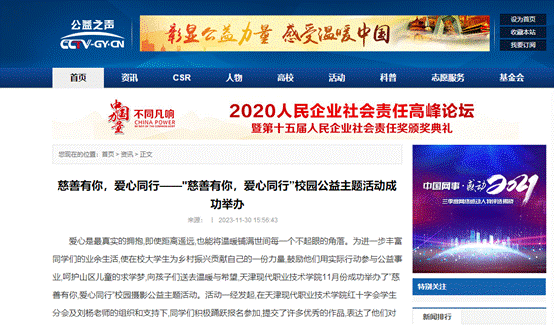 为进一步丰富同学们的业余生活,使在校大学生为乡村振兴贡献自己的一份力,呵护山区儿童的求学梦,向孩子们送去温暖与希望,2023年11月初,学院红十字会在全院范围内发起了“慈善有你,爱心同行”主题校园摄影公益捐书活动,受助学校和孩子们专门发来感谢信,同时该活动被“CCTV公益之声”官网专题报道。
