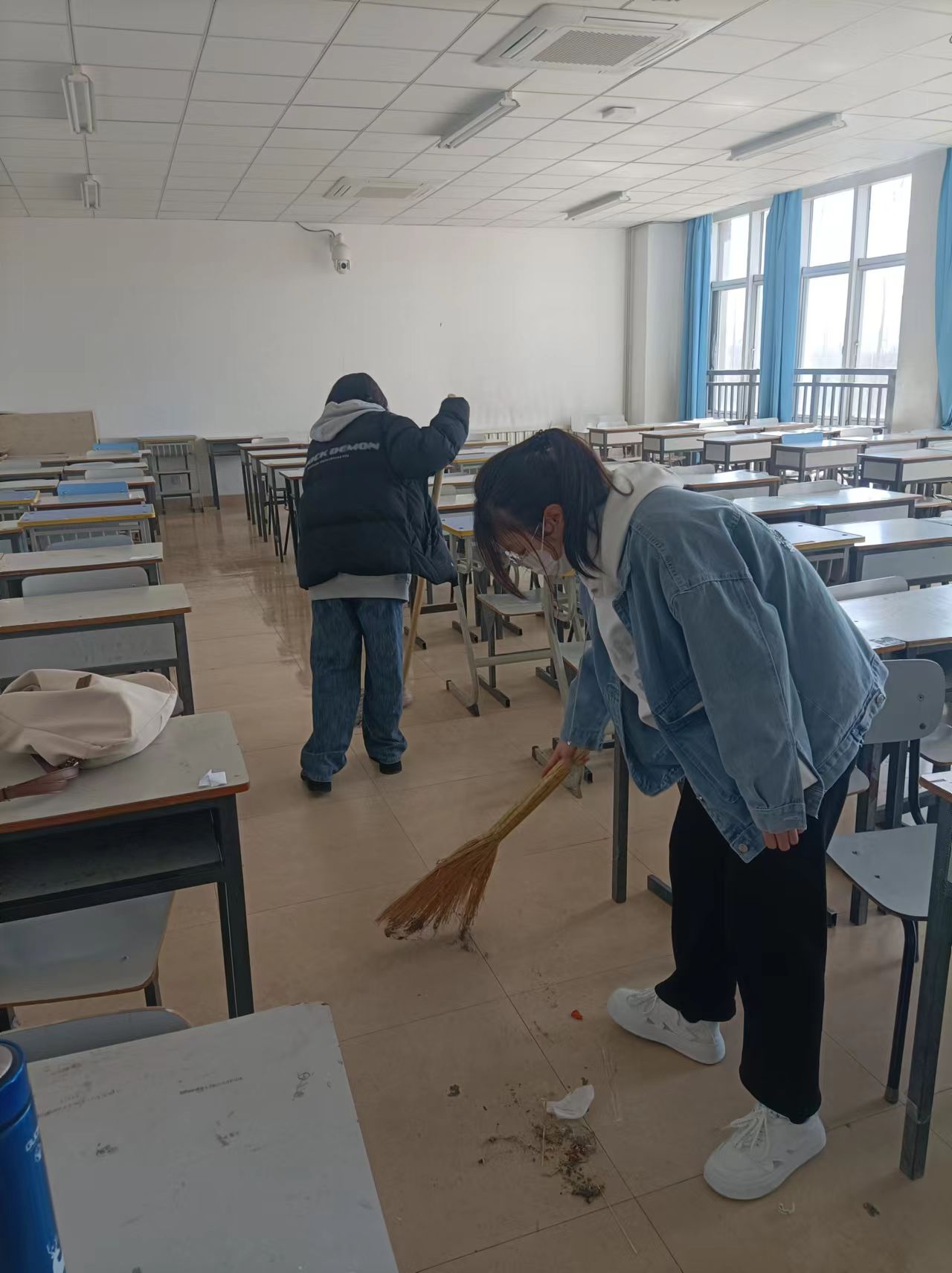 3月8日中午,入党积极分子与递交入党申请书同学集体参加了“新学期 让教室更美丽”学雷锋志愿清扫活动。