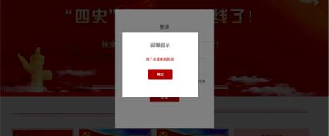 如下图所示,如果提示“用户名或密码错误”,则需检查输入的账号,忘记密码或其他问题请联系相关人员反馈。