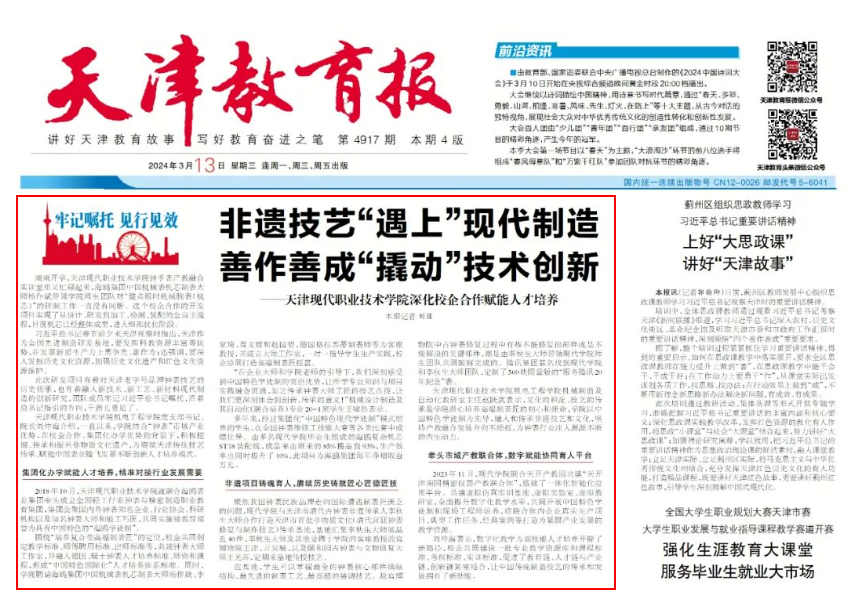 Beat365中文官方网站机电工程学院党支部书记、院长刘仲海介绍,一直以来,学院结合“钟表”市域产业优势,在校企合作、集团化办学优势的背景下,积极挖掘、传承和振兴非物质文化遗产,为赓续天津传统技艺传承、赋能中国表业腾飞发展不断创新人才培养模式。