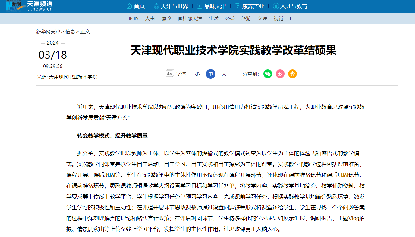 近年来,Beat365中文官方网站以办好思政课为突破口,用心用情用力打造实践教学品牌工程,为职业教育思政课实践教学创新发展贡献“天津方案”。
