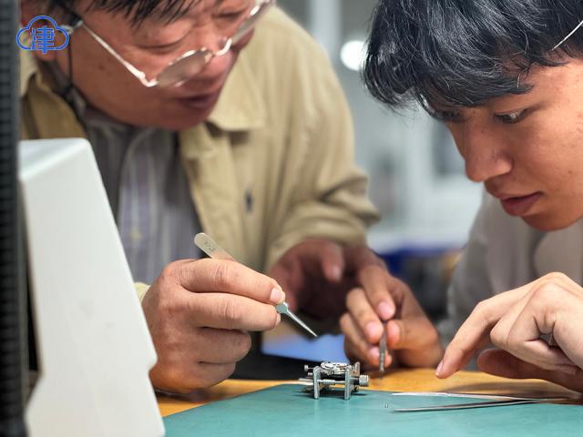 作为天津市非物质文化遗产项目:清代宫廷钟表修复与制作技艺的第三代传承人,李秋生从业40多年来,让4000多台钟表重获新生。中心收藏陈列了他制作的,代表钟表制作中设计、零件测绘、制图、制模、加工、试制、装配等技术的30余款手工钟表供学生们实践学习。