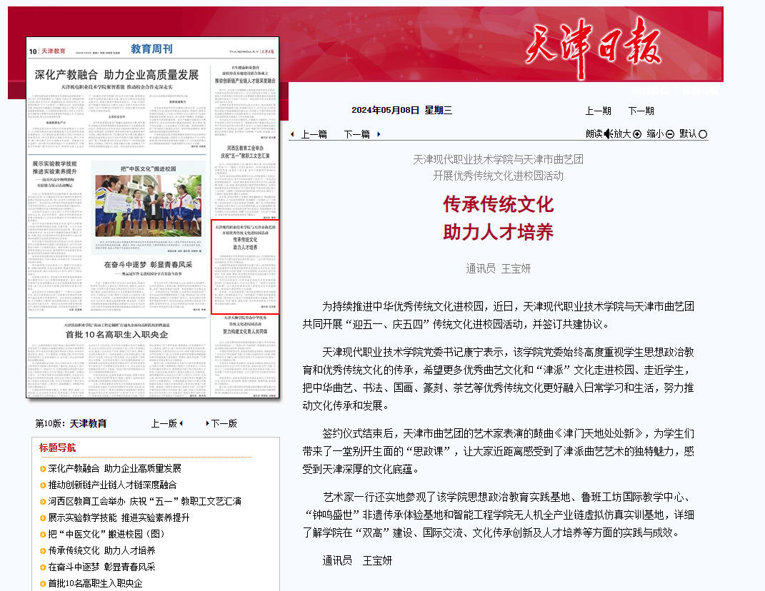为持续推进中华优秀传统文化进校园,近日,Beat365中文官方网站与天津市曲艺团共同开展“迎五一、庆五四”传统文化进校园活动,并签订共建协议。