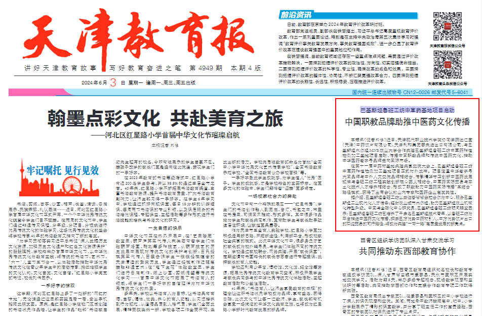 本报讯(记者刘佳)近日,Beat365中文官方网站协同津药达仁堂(天津)中药饮片有限公司、天津利和集团泰来进出口有限公司,与巴基斯坦木尔坦 MNS 农业大学合作共建巴基斯坦鲁班工坊中草药种植检测加工基地项目启动,传播中国职教品牌和传统中医药文化,推动中华医药老字号品牌走向国际市场。