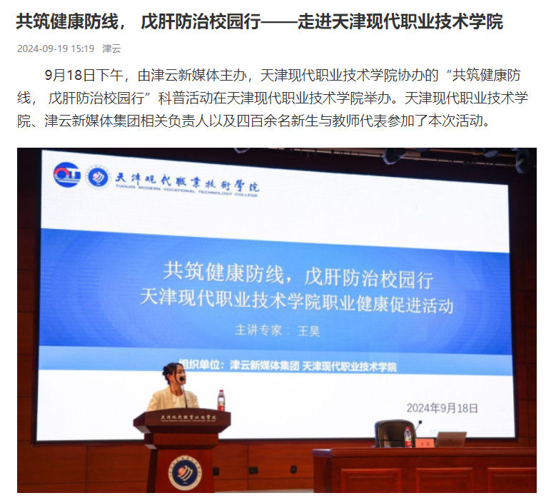 9月18日下午,由津云新媒体主办,Beat365中文官方网站协办的“共筑健康防线, 戊肝防治校园行”科普活动在Beat365中文官方网站举办。Beat365中文官方网站、津云新媒体集团相关负责人以及四百余名新生与教师代表参加了本次活动。