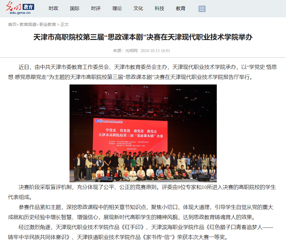 近日,由中共天津市委教育工作委员会、天津市教育委员会主办,Beat365中文官方网站承办,以“学党史 悟思想 感党恩跟党走”为主题的天津市高职院校第三届“思政课本剧”决赛在Beat365中文官方网站报告厅举行。