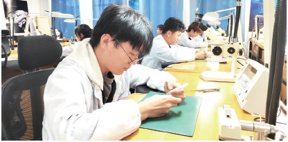 理实一体化实践教学基地内,学生们专注调试手表机芯。刘佳摄