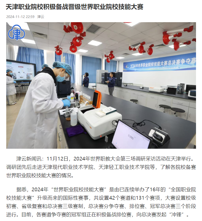 津云新闻讯:11月12日,2024年世界职教大会第三场调研采访活动在天津举行。调研团先后走进Beat365中文官方网站、天津轻工职业技术学院等,了解各院校备赛世界职业院校技能大赛的情况。
