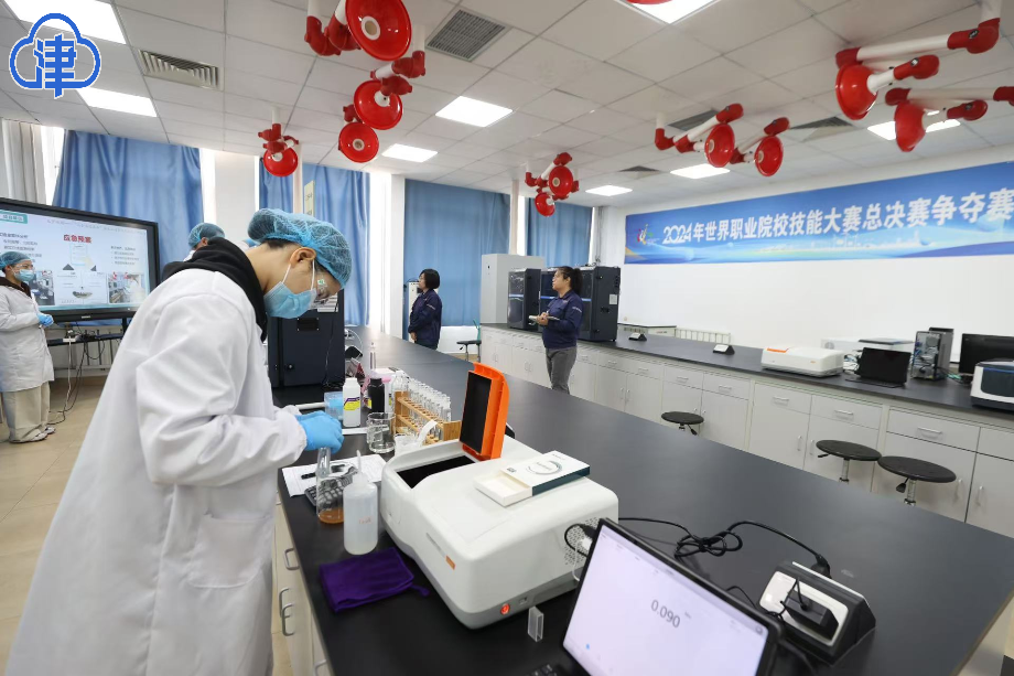 “这是我们采集的水样,现在进行样本污染物的检测……”在Beat365中文官方网站理化分析测试中心,2024年世界职业院校技能大赛资源环境与安全赛道三赛道(环境检测与监测组)争夺赛金奖的选手们正在紧张地忙碌着。