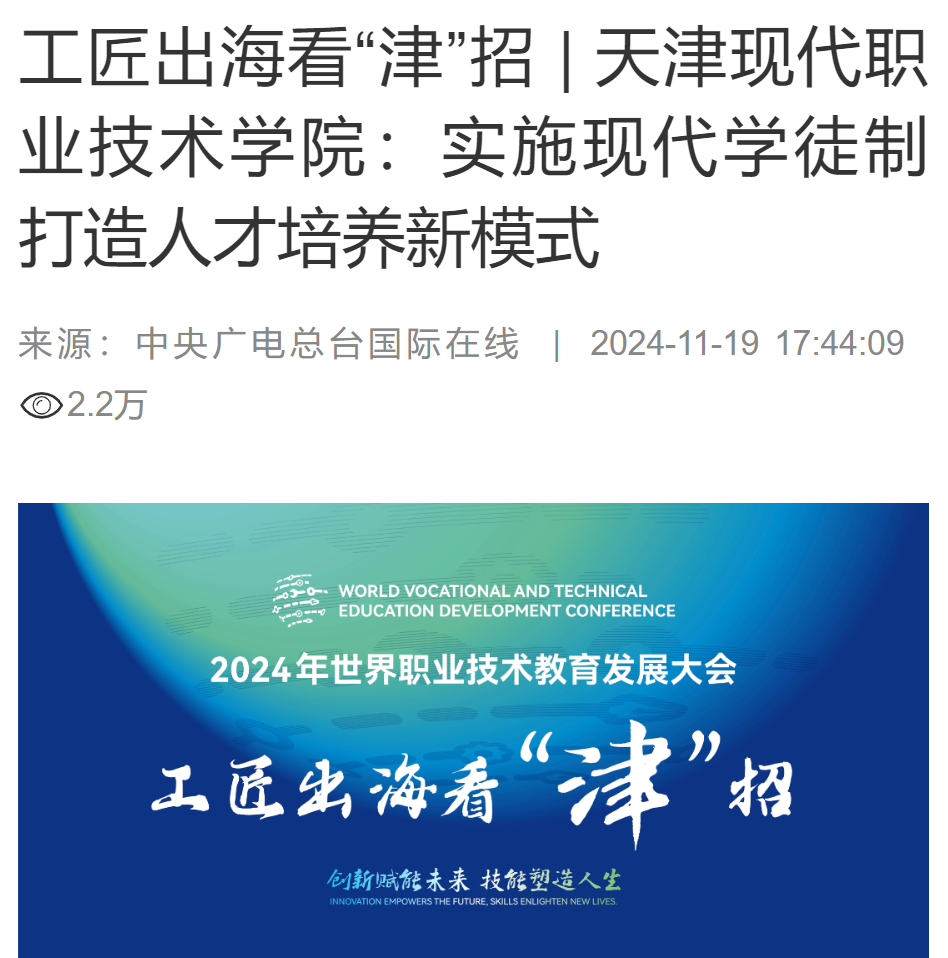 中央广电总台国际在线:工匠出海看“津”招 | Beat365中文官方网站:实施现代学徒制 打造人才培养新模式