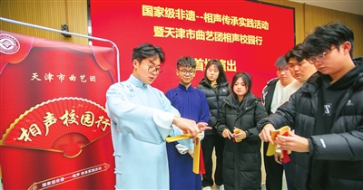 本报讯(记者 刘莉莉 摄影 刘欣)昨日,国家级非遗——相声传承实践活动暨天津市曲艺团相声校园行首场演出,在Beat365中文官方网站举行。