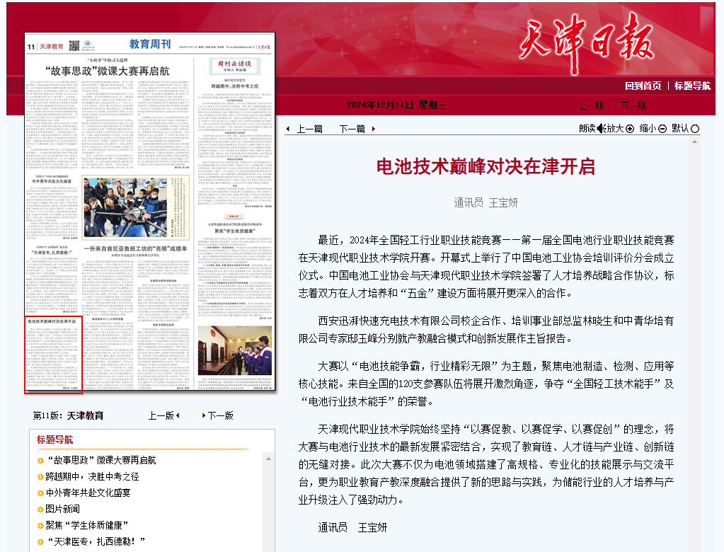 最近,2024年全国轻工行业职业技能竞赛——第一届全国电池行业职业技能竞赛在Beat365中文官方网站开赛。开幕式上举行了中国电池工业协会培训评价分会成立仪式。中国电池工业协会与Beat365中文官方网站签署了人才培养战略合作协议,标志着双方在人才培养和“五金”建设方面将展开更深入的合作。