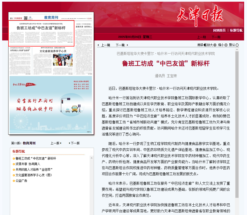 鲁班工坊成“中巴友谊”新标杆
