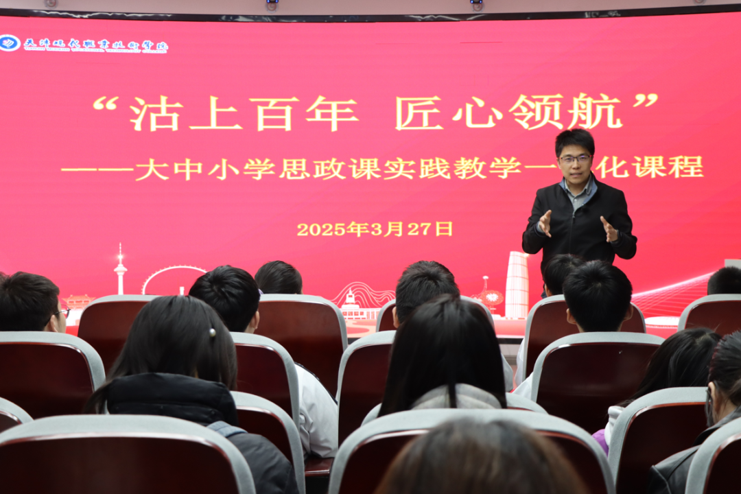 在理论拓展环节,历史课教师和思政课教师同台授课,并与学生积极互动,气氛热烈,学生们对天津工业历史脉络和现代成就有了更加深刻的理解。