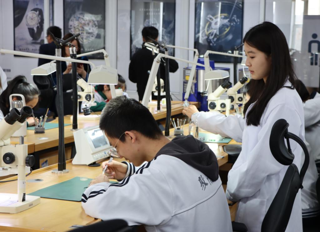 在“钟鸣盛世”非遗传承基地,一座座工艺精湛的古钟表让学生们了解到古董机械钟表不仅是时间的记录者,更是传统工艺的瑰宝。在机械手表装调实训基地,微观机械世界的精致与严谨更是引发了大中小学生们对“工匠精神”的思考。
