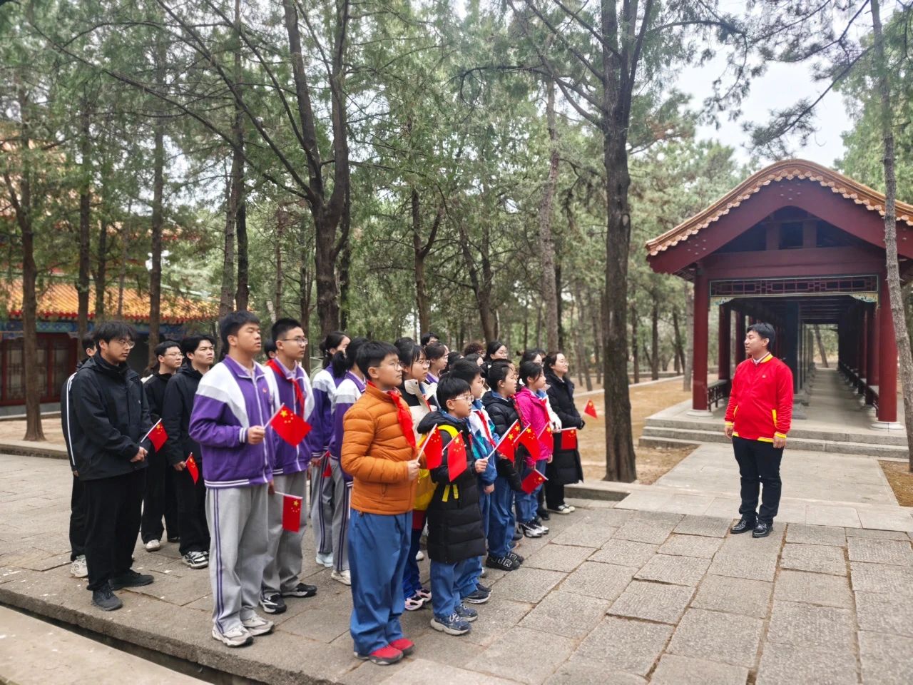 天津职业技术师范大学机械工程学院联合南开翔宇学校、天津职业技术师范大学附属小学共50余名师生,沿着“蓟州烽火”红色资源体验线路,前往蓟州区盘山烈士陵园开展“大中小学生赴盘山烈士陵园共上一堂思政课”活动,引导学生们赓续红色血脉,点亮信仰之光。