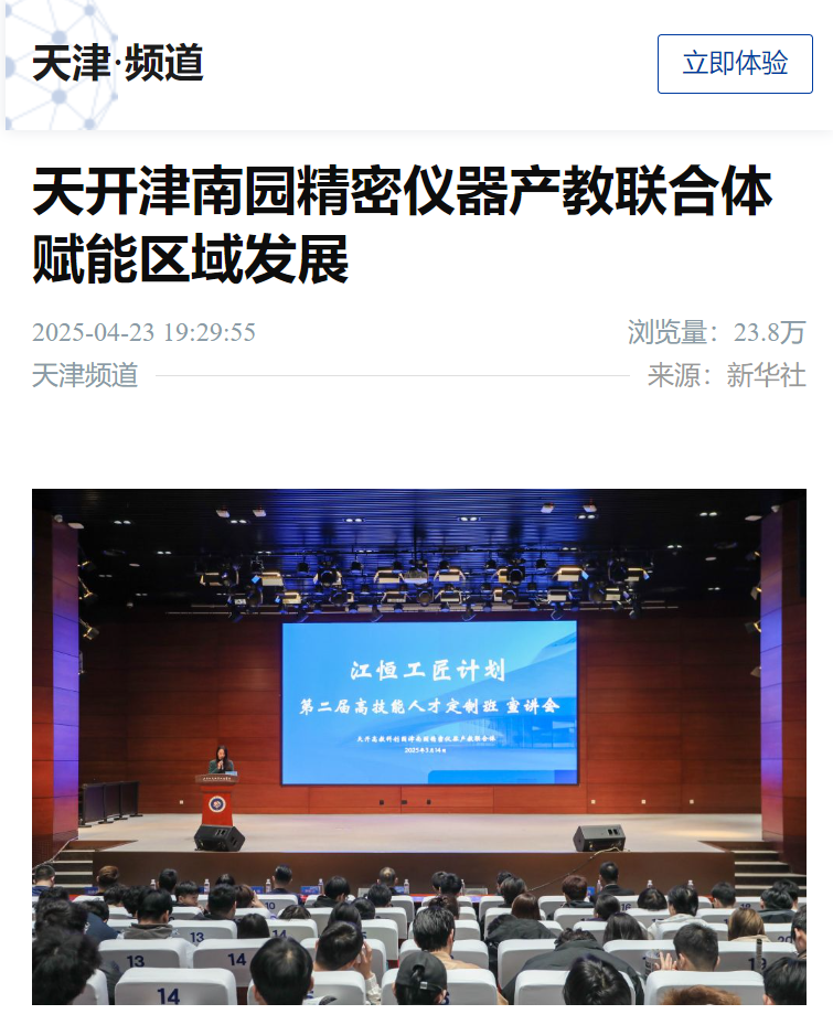 成立1年多以来,联合体的一系列创新探索与尝试,不仅为民营经济转型升级提供新思路,更彰显了市场化机制在产教深度融合中的独特价值。天津海河教育园区管委会产教融合部副部长魏楠表示,联合体将持续构建创新生态,吸引更多京津冀创新资源,助力天津成为全国精密仪器领域的创新策源地和人才高地,同时为全国产教融合实践提供可复制的“津南方案”。