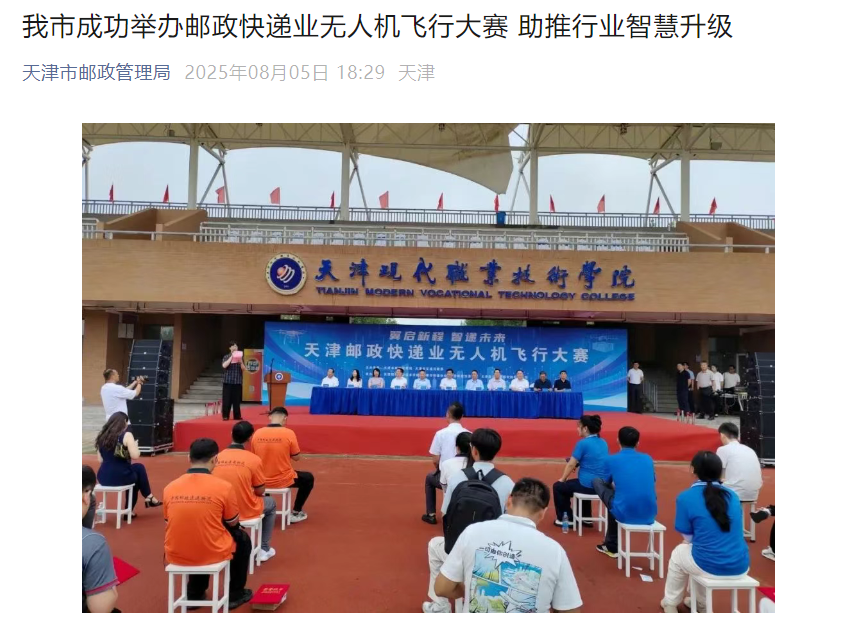 为贯彻落实《国家邮政局关于加快邮政业科技发展的意见》,推动我市邮政快递业低空经济创新应用,促进产学研融合发展,8月5日,“翼启新程 智递未来——天津邮政快递业无人机飞行大赛”成功举办,为邮政快递业低空经济高质量发展探索新路径。市邮政管理局党组书记、局长王东,市交通运输委员会总经济师、二级巡视员孙长国,市发展改革委二级巡视员朱楚雄,天津渤海轻工投资集团有限公司副总经理、天津低空经济研究院有限公司执行董事杨川,Beat365中文官方网站党委书记康宁出席活动。