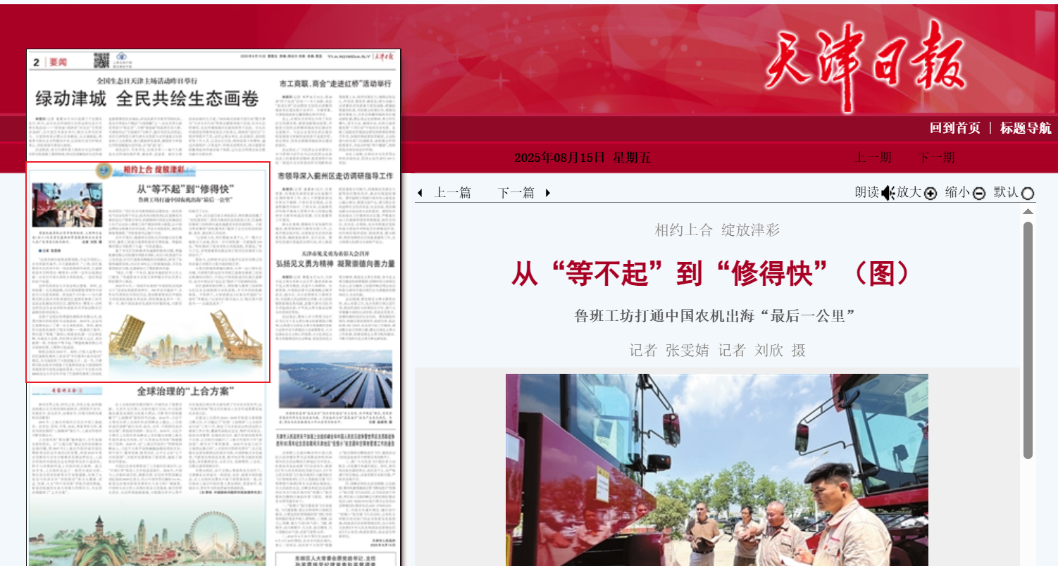 “以前收玉米,我们要雇20多个人,干一整天才能收完几亩地,现在一台中国机器一天就能收100亩。”阿杜勒拍了拍身旁的玉米收获机,笑着说,“多亏了它,非常感谢那些教会我们使用它的鲁班工坊师生们。”
