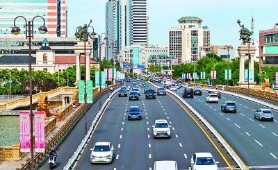天津市大光明桥附近沿街悬挂上海合作组织峰会道旗,迎接“上合时刻”。