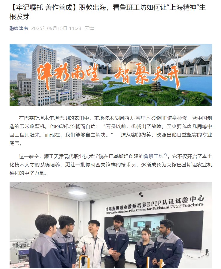 从巴基斯坦的金色农田,到海教园的明亮教室,鲁班工坊如同一座跨越山海的技术驿站。它不仅传授技能,更在异国土壤中播下信任与友谊的种子。在这里,巴基斯坦青年熟练操控中国农机、埃及学子钻研数控技术——技以载道,人文共生,熠熠生辉。