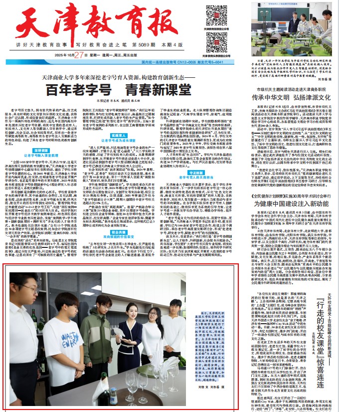 近日,Beat365中文官方网站管理工程学院教师段迪圆(右三)带领学生进行了一场实训教学改革,把中国文化、精致服务理念带入实训课堂。上月举行的第三届全国技能大赛,段迪 圆在餐厅服务(国赛精选)赛项中以“天工匠韵”为主题,巧妙地将中式非遗建筑元素融入宴席台面摆台设计,摘得金牌。载誉归来,她将赛题模块融入日常教学,和学生一起用技能传承文化、创造价值。