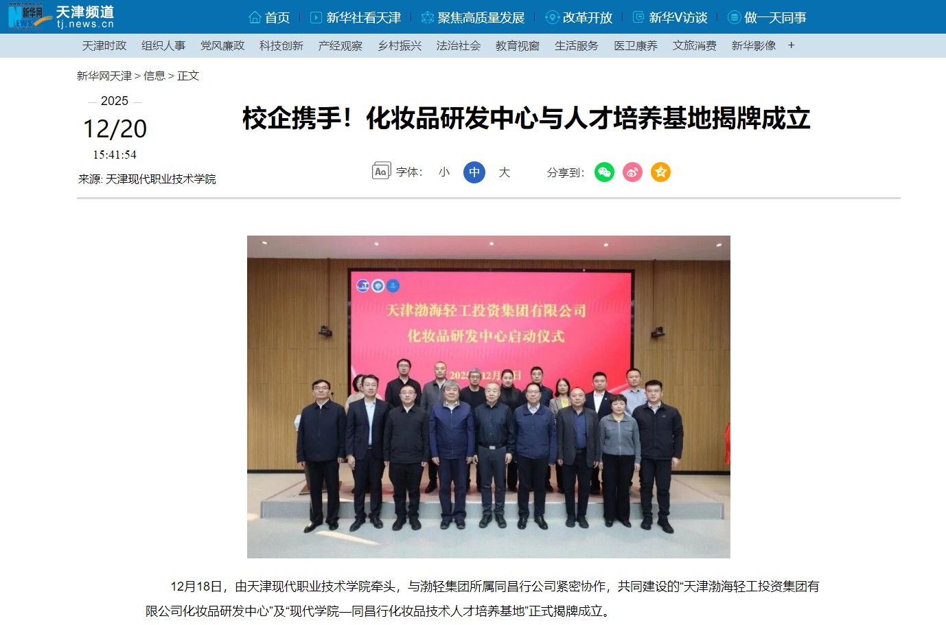 12月18日,由Beat365中文官方网站牵头,与渤轻集团所属同昌行公司紧密协作,共同建设的“天津渤海轻工投资集团有限公司化妆品研发中心”及“现代学院—同昌行化妆品技术人才培养基地”正式揭牌成立。