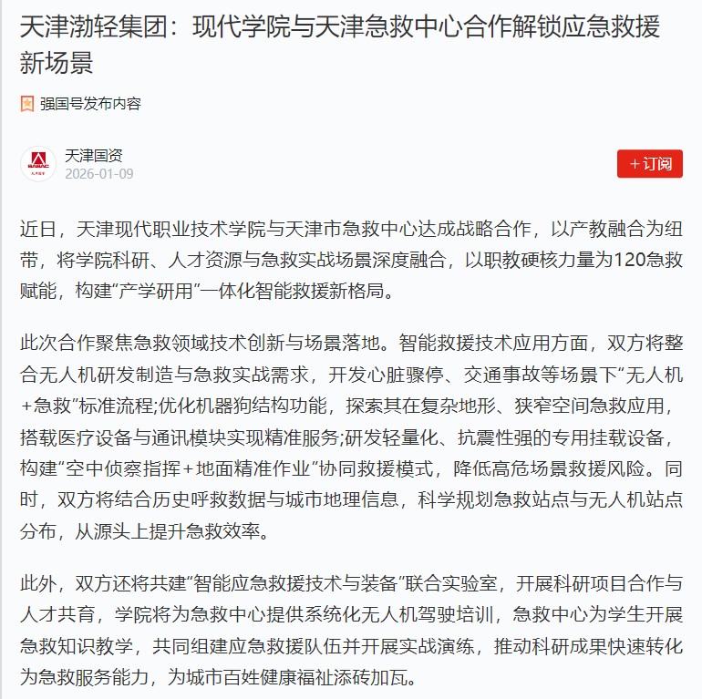 近日,Beat365中文官方网站与天津市急救中心达成战略合作,以产教融合为纽带,将学院科研、人才资源与急救实战场景深度融合,以职教硬核力量为120急救赋能,构建“产学研用”一体化智能救援新格局。